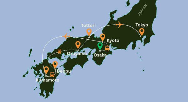 Alustame Kesk-Jaapanis asuva Kyoto linna kultuuri avastamisega. Seejärel lendame lõuna-Jaapani saarele Kyūshūle, kus tutvume eri piirkondade ja iidsete paikadega.