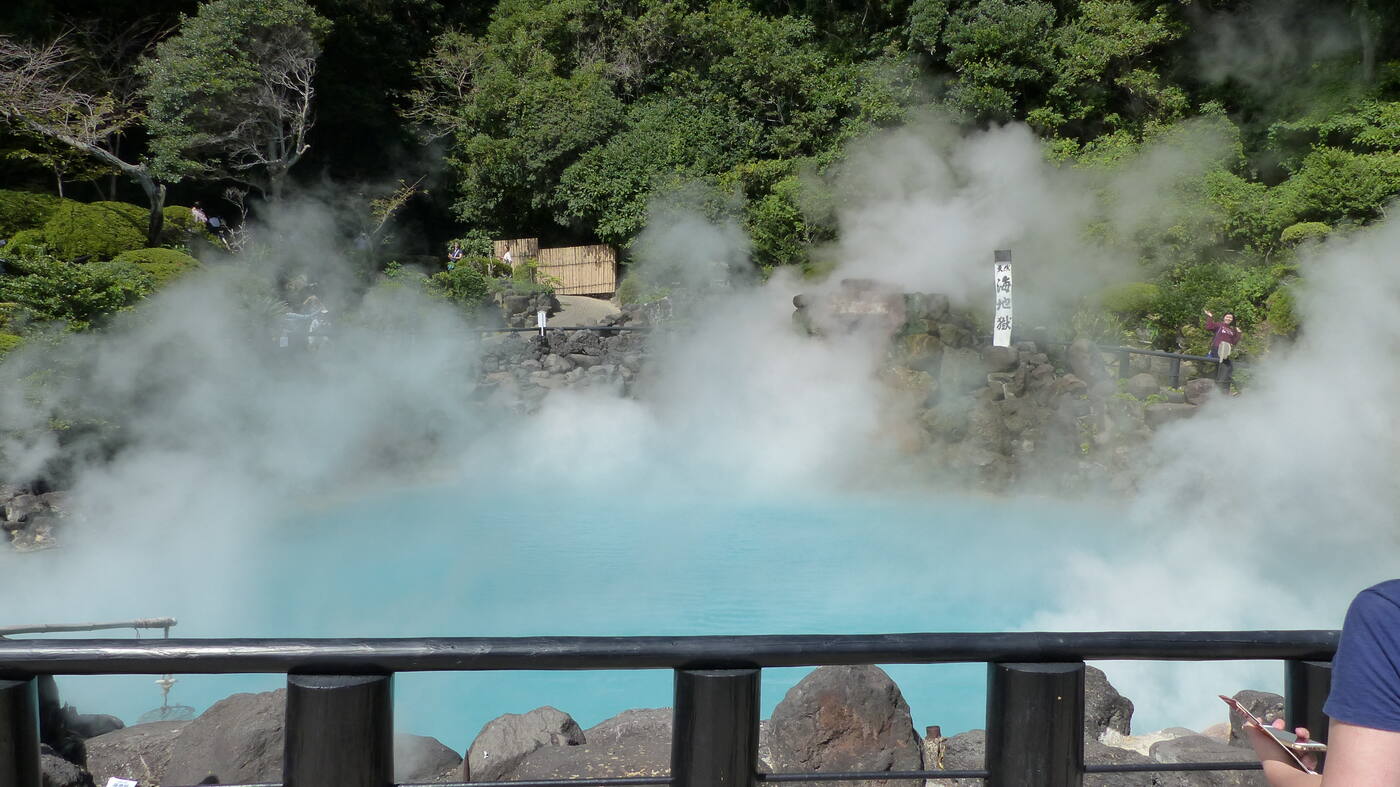 Veedame päeva Kyūshū maastikku imetledes, mida kujundab aktiivne vulkaaniline tegevus. Aso mägi on maailma suurim kraater ning kuumaveeallika linnakestes suitsevad kaljulõhed ja fumaroolid.