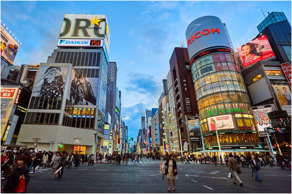 Maailma ühe suurima linna mastaapide adumiseks vaatame kõigepealt Tokyo panoraami ja maailma rahvarohkeimat ristmikku Shibuyas ülevalt – Shibuya Sky 230 meetri kõrgusel asuvast observatooriumist. Shibuya ristmikku ületab iga valgusfoori vahetumise tagant umbes sama palju rahvast kui pärast mõne kontserdi lõppemist Tallinna laulukaare all. Ristmik on üks armastatuim ja melurikkam koht noorte tokyolaste hulgas. Siinne ristmik on täis säravaid reklaame, neoonsilte, hiiglaslikke teleekraane ja loomulikult rahvast. Shibuya tänavad on justkui moelavad noorte trenditeadlike jaoks. Shibuya on Tokyo noorte sakariba ehk pidutsemise linn olnud juba alates 1930-ndatest. Tänapäeval on see koht, kus saab näha uusimat moodi, toitu, muusikat ja tehnoloogilisi vidinaid. Shibuya hakkas eriti hoogsalt arenema pärast olümpiamänge 1964. aastal. Siin on tänavate labürint, kus on ridamisi trendikaid butiike, kaubamajasid, mõned huvitavad muuseumid aga ka ööklubisid, kõrtsitänav Nonbei Yokocho ja armupesa kuulsusega hotelle.
