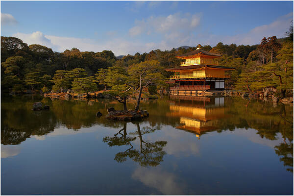 Edasi suundume Kinkaku-ji (tuntud ka kui Kuldne tempel) juurde. Kuldne tempel hõljub häirimatult justkui lootoslill kauni Kyokochi tiigi kohal. Hoone peegeldus tiigil on hingemattev vaatamisväärsus isegi neile, kes on seal sagedased külalised. Suurustleva Kuldse paviljoni rajaja šogun Ashikaga Yoshimitsu (1358-1408) palus maise elu lõpus enda hinge lunastamiseks muuta oma villa zen-budistlikuks templiks. Kyoto enim jäädvustatud paik on püsinud jaapanlaste hiilgeaegade võrdkujuna ning mõjukaima turismimagnetina üle 500 aasta. Kahjuks üks õnnetu meeltesegaduses munk hävitas templi süütamise läbi 1950. aastal. Hoone ehitati uuesti üles paar aastat hiljem originaali täpse koopiana, milleks kasutati muuhulgas 100 000 22-kraadist kullalehte. Jalutuskäik templi lopsakates aedades võimaldab kogeda templi majesteetlikku säravat ilu erinevatest vaatenurkadest. Ümbritsevad mäed laenavad oma suursugust ilu aiale, muutes selle hoomamatult avaraks.