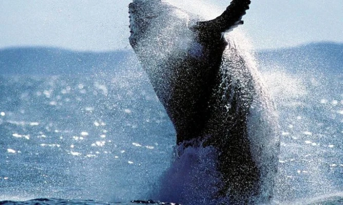 Ajuti paiskub üks hiidudest peaaegu üleni veest välja. Kas suudate kujutleda, kuidas kaheksa elevandi raskune ehk ligi nelikümmend tonni kaaluv olend veest välja sööstab? Vett lendab igasse kaarde, nagu oleks lendu lastud võimas veealune tiibrakett. Juba peaaegu veest välja kerkinud, pöörab küürvaal oma selja vee poole nagu õhuakrobaat, kes valmistub tegema tagurpidisaltot. Aga salto nurjub ja määratu kere plärtsatab täies pikkuses vette, paisates õhku üüratuid veesambaid.