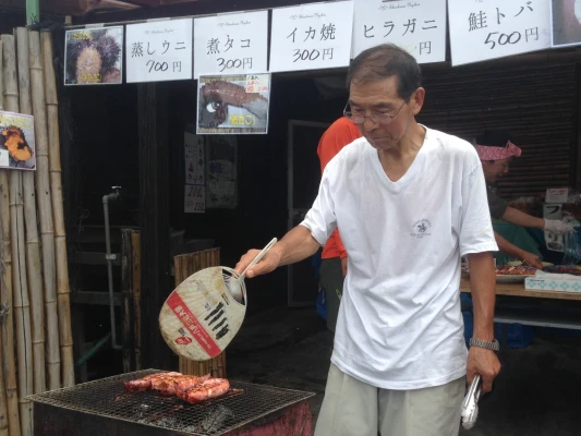 Lisaks veel pannil liigutavatele mereandidele maitsen kohalikku rameni suppi. Suppi kutsutakse siin ichigo-ni. Ichigo tähendab jaapani keeles maasikat - maasikaks supis on merisiilik, mis kuuma puljongiga kohtudes muutub piimjalt punakaks nagu hommikune kastemärg mari. Siinse piirkonna kohalikuks uhkuseks ongi uni ehk merisiilik. Merisiilik on magus ja hõrk. Juurde pakutakse ka ebatavalise maitse ja tekstuuriga hoya’t (tünnikloom) ja shirako’d (niisk). Abiotsivalt vaatan teistele sööjatele otsa aga tean, et mul on hoya ja shirako’ga oma võitlus võidelda.