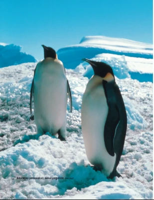 Kui pingviinid suudakski ületada ekvatoriaalveed ja jõuda Arktikasse, leiaksid nad seal, et vastava ökoloogilise niši on juba hõivanud lunnid, kelle arenenud lennuvõime päästab neid ka maapealsete kiskjate käest. Paljunemistsükkel on pingviinidel ajastatud täpselt nii, et pojad kooruvad ja iseseis-vuvad ajal, mil on kõige rohkem toitu. Pesitsemise edukus sõltubki toidu kättesaadavusest ning kui ulatuslik merejää püsib kaua, jääb ellu vähe tibusid. Pingviinid toituvad kaladest, peajalgsetest ja vähilaadsetest, Antarktikas siiski peamiselt krillist. Täiskasvanud pingviinidel pole maapealseid vaenlasi, kuigi nende mune ja poegi jahivad röövännid ja tormilinnud. Vees kütivad pingviine leopardhülged ja mõõkvaalad. Nimetus pingviin tuleneb ladinakeelsest tüvest, mis tähendab rasvast. Varasemas eesti keeles oligi ta rasvahani. Lennuvõimetuid pingviine peeti kaua kõige primitiivsemateks lindude seas, kuid nüüd teame, et nad on pakase ja merelise eluga kõige paremini kohastunud sulelised. Fossiilid näitavad, et pingviinid lahknesid lendavatest lindudest ca 50 miljoni aasta eest. Vähemalt 25 liiki on tänaseks välja surnud, mõned olid nüüdsetest suuremad. Suurim neist oli kuni 180 sentimeetrit pikk ja ligi 100 kilogrammi raske hiigelpingviin Pachydyptes ponderosus. Pildil: Eeselpingviin Kuningas George'i saare rannavees. Foto ENN KAUP Lühikesed suled moodustavad justkui katuselaastud paksu veekindla väliskihi, mille all on sooja-pidavad kohevad suled. Kuni 7 sentimeetri paksune nahaalune rasvamantel on kohane külmas vees ja õhus ning aitab üle elada pikki paastumisi. Soojapidavus võib olla liigagi hea, tekitades ülekuu-menemist suvekuudel. Pingviinidel on voolujooneline keha ning loibadeks arenenud tiivad, mis lubavad vee all kuni 10 meetrit sekundis ujuda ning kuni 250 meetri sügavusele sukelduda. Erinevalt lendavatest lindudest on neil tihedad luud. Lühikesed jalad on keha tagaosas ja moodustavad koos jäiga sabaga tõhusa veealuse rooli, kuid muudavad maapealse astumise kohmakaks taarumiseks. Üle sileda jää ja lume libisevad nad „kelgutades”, lükates ennast edasi tiibade ja jalgadega. Jalgade ülaosas on soojus-vahetid, mis võtavad soojust jalalabadele voolavalt verelt ja annavad selle sealt naasvale verele. Jalgade verevoolu vähendamine külmas on teiseks nutikaks mooduseks, mis aitab pingviinidel tunde jääl seista. Antarktika pingviinid on väga arvukad, eelkõige just sellepärast, et nende elupaik asub kaugel inimasulatest, ning lähemas tulevikus nad otseselt ohustatud ei ole. Siiski on nad väga sõltuvad oma toiduvarude (kalad, peajalgsed, krill) suhtes ning seepärast reguleerib CCAMLR nimetatud liikide püüki. Antarktika poolsaare piirkonna soojenemine viimasel ajal on vähendanud talvise merejää ulatust, mis omakorda on loonud uusi pesitsusalasid vaba vett eelistavatele valjaspingviinidele. Pildil: Adeeliapingviinil on tavaliselt kaks poega. Foto ENN KAUP Triivjääd eelistavad adeeliapingviinid peavad rändama kaugemale lõunasse. Adeeliapingviinid on justkui mehikesed õhtuülikonnas ning näivad pingviinide maailma kärmete koomikutena. Prantsuse Antarktika uurija Jules Dumont d’Urville andis neile nime aastal 1840 oma naise Adele’i järgi. Nad elavad üle 16 aasta vanuseks. Talve veedavad nad triivjääl ja suveks liigu-vad Antarktise rannikule pesitsema. Ranniku jäävabadel aladel ja saartel pesitseb umbes 2,5 miljonit paari, koos keiserpingviinidega on nad kõige lõunapoolsemad pingviinid. Pesad asuvad kolooniates üksteisest nokalöögi kaugusel ja koosnevad kivikestest. Kahe muna ligi 5-nädalasel haudumisel osalevad mõlemad vanemad. Mul oli juhust täheldada, et Maiolli saare koloonias Molodjožnaja jaama lähedal koorusid esimesed tibud 24. detsembril nii 1972. kui ka 1988. aastal. Põnev on istuda koloonia kõrval, jälgida linde ja avastada, et neile pole sugugi võõrad mitmesugused inimestelegi omased kombed, nagu varastamine (varguse objektiks on pesakivid), üleaisalöömine e abielu-rikkumine, homoseksuaalsus (noorte pingviinide hulgas), nekrofiilia ja palju muudki veel. Valjaspingviinid pesitsevad merelis-antarktilistel saartel ja Antarktika poolsaarel. Ligi 8 miljoni pesitsuspaariga on nad kõige arvukamad Antarktika pingviinid. Nokka ja jalaküüniseid abiks võttes ronivad nad kõrgetele nõlvadele, mis kevadel esmalt lumest vabanevad, ja rajavad sinna oma pesapaigad. Aasta-aastalt pesitsetakse sama partneriga, kellega koos hautakse kordamööda, kokku veidi üle 5 nädala, oma kahte muna. Koloonias on valjaspingviinid väga lärmakad ning ründavad iga inimest, kes nende territooriumile tungib. Pildil: Sulgivad valjaspingviinid Kuningas George'i saarel. Foto ENN KAUP Eeselpingviinide pesitsusala oma vaid 300 000 paariga ulatub valjaspingviinidest veidi kaugemale põhja, ka Macquarie, Kergueleni, Prints Edwardi ja Crozet ning Falklandi saarteni. Eeselpingviini tugev saba liigub kõndides küljelt küljele, õigustades ladinakeelset perekonnanime Pygoscelis (harjasaba). Pesamaterjali (kivid, sammal, muda) kogub kokku isane (kena pesakivi aitab emase soosingut võita), pärast paaritumist jääb pesaehitus emase hooleks. Eeselpingviinid on vähem sotsiaalsed ning pesitsevad väikeste gruppidena, ka koos teiste pingviinidega. Vahetustega hau-dumine kestab 5 nädalat, heal aastal jäävad mõlemad tibud ellu, kuid põhjapoolsematel aladel teisena koorunud tibu tavaliselt sureb. Perekonda Eudyptes kuuluvatel tuttpingviinidel on oranžid jalad ja nokk ning iseloomuliku tunnusena pikad kolla-oranžid kulmukarvad, mis annavad neile dändiliku välimuse (ingl k macaroni). 12 miljoni pesitsuspaariga on nad üldse arvukaim pingviiniliik, kuid ainult osa neist elab lähisantarktilistel saartel, ülejäänud kaugemal põhjas. Nende tihedate ja lärmakate kolooniate arvukus ulatub 100 000 paarini. Mõistatuseks on, miks esimesena munetud muna on väiksem kui teine, ja miks sellest koorub tibu vaid siis, ku