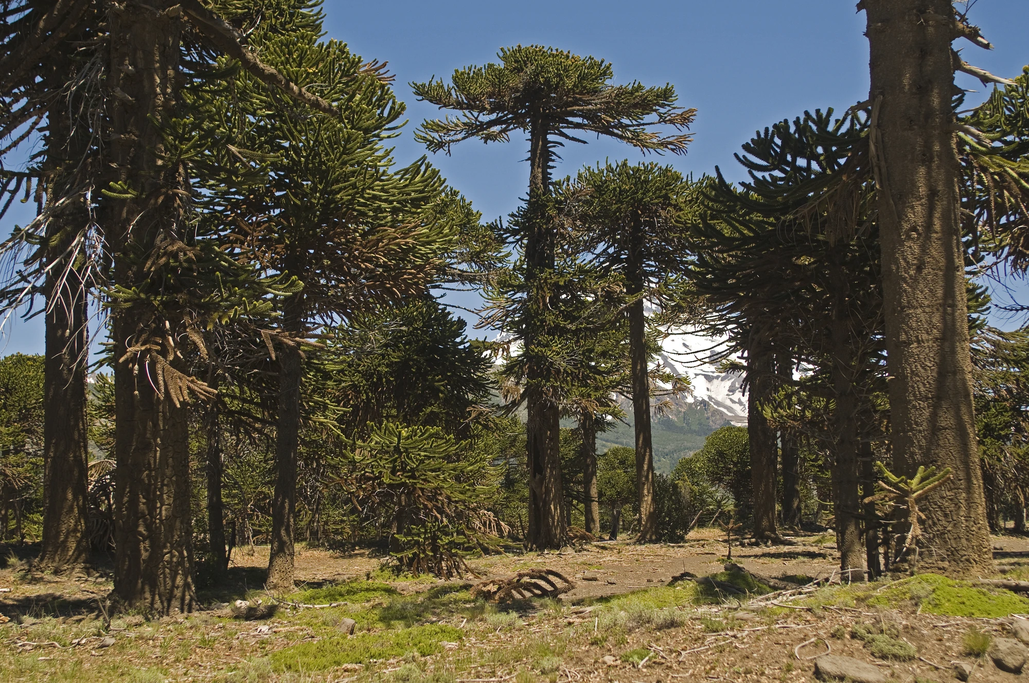 Metsast ei kosta ühtegi linnuhäält ja maapind on taimedest peaaegu lage. Pinnas koosneb enamjaolt sõmerjast hallikaspruunist vulkaanilisest tuhast. Loodusteadlased kinnitavad, et tšiili araukaaria metsadele on säärane pinnas õige tüüpiline. Millegipärast sobivad neile Lõuna-Andides paigad, mis asuvad suurte vulkaanide lähistel. Paistab, et looduskatastroofid suisa sobivad araukaariametsadele. Ka põlengud, mis üldiselt ju metsa laastavad, toovad vanadele araukaariasaludele pigem kasu. Puu korgitaoline korp kaitseb tüve hästi leekide eest. Pärast põlengut hakkab lagedaks jäänud ja tuhaga väetud metsaalusel idanema eriti ohtralt noori araukaariaid. Asun metsa pildistama. Kaadris on vaid fantastilise välimusega puud ja taamal kõrguv ähvardav vulkaan. Näha pole ainsatki lehtpuud ega muud õistaime, puuvõrade vahel ei lenda ühtegi lindu. Järsku taipan, et samasuguse pildi saanuksin, kui oleksin sattunud mingil imelisel viisil ajamasinaga suvalisse paika maakeral 200 miljonit aastat tagasi. Õistaimi, linde ja imetajaid polnud tol ajal veel olemas ning metsad koosnesid araukaariatest ja nende sugulastest. Araukaariatele sarnanevate puude jäänuste kivistisi on tänapäeval leitud paljudes maailma paikades, kaasa arvatud Euroopas. Praeguseni säilinud araukaarialiikidest, mida kokku üle tosina, on vist kuulsaim tšiili araukaaria, mis kasvab looduslikult kitsal alal Andide mäestikus Tšiilis ja Argentiinas. Erilise välimuse ja tähenduse tõttu on puu kuulutatud tšiili rahvuspuuks.Maputšed, Lõuna-Andide isepäine indiaanirahvas