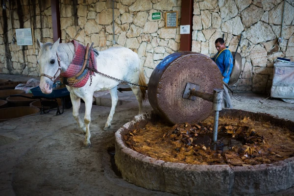 Kolm päeva kestnud küpsemise järel olid agaavitaimede tükeldatud südamikud tõstetud arhailisse purustajasse, mida ka egiptuse tüüpi veskiks nimetatakse. Los Danzantese meistrid olid mingil hetkel proovinud kasutada ka elektrilisi jahvateid, aga kuna mezcali maitseomadused langesid, siis pöördusid nad tagasi traditsioonilise, hobujõul töötava purustusmeetodi juurde. Kusjuures vahepeal neil oma hobust polnudki ja teda renditi vastavalt vajadusele.