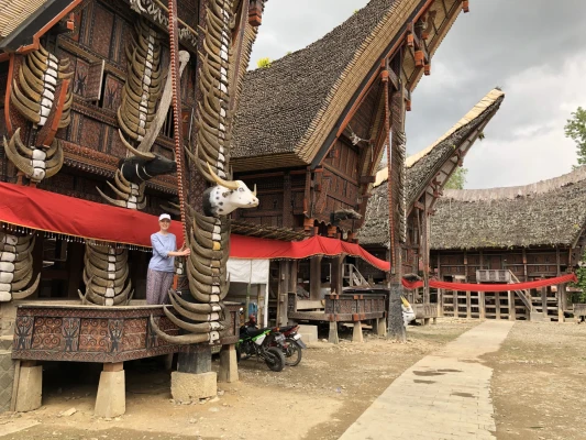 Logistasime mööda kitsaid auklikke teid tunnikese või paar üles mäkke Palawa külla. Küla peatänaval seisid reas torajade traditsioonilised majad tongkonanid ja teisel pool näoga majade poole nende vähendatud koopiad – riisiaidad. Majade ja aitade vahele olid tõmmatud pidulikud punased kangad ja lindid.