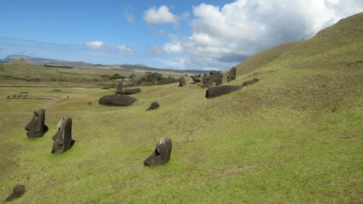 Enamik saare moaidest alustas oma retke Rano Ranaku kivimurrust. Ligi 500 neist ei ole aga kunagi sealt ära kõndinud, vaid on seal väljatahumise staadiumis, mõni püsti, mõni pikali. Paljud kujud on kannatada saanud, erosioon ja inimtegevus on neid halastamatult närinud. Mõne moai külgedel on näha peente sõrmede ja pikkade küüntega käed. Mõnel on tugevad õlad ja tätoveeringud, teisel näha isegi naba ja niudevöö. Kõikidel kujudel on aga loomulikult hiiglaslik pea. Kõrvad on enamasti üleloomulikult välja venitatud nagu ninadki, huuled on kergelt torus. Ei saa öelda, et nad meenutaksid mingilgi moel polüneeslasi. Mõned tunduvad ka olevat transportimise käigus maha jäetud ja kindlasti leidub neid veel sajandite jooksul tekkinud pinnasekihi all. Mõni moai on vaid osaliselt tahutud ja emakalju küljes kinni, nii ka kõige suurem siiani avastatud kivikuju, mille kaal on arvestuslikult ligi 250 tonni.