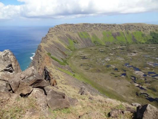 Ilma aega raiskamata tõmbas Sabrina meid Rapa Nui ajaloo ja geoloogia keerdkäikude rägastikku. Põnevaid lugusid ja infot voolas nagu külluse sarvest. Oli selge, et terve saareke on arheoloogide, ajaloolaste, antropoloogide, keeleteadlaste, bioloogide, kunsti- ja geoloogiahuviliste jaoks tõeline Xanadu. Kogu seda põnevust võimendas metsik ja karmiilmeline ilu, mis oli segu moaidest (suurtest peadest), vulkaanidest, koobastest, järskudest kaljudest ja kivistest lahesoppidest. Niisiis olid järgmised päevad segamini täis turnimist-ronimist-kõmpimist-ohhetamist-ahhetamist. Rapa Nuil oli lihtsalt nii palju uudistada, et järg läks sassi.